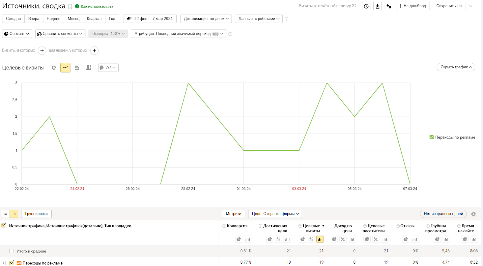 За первую половину месяца (15 дней) мы получили 21 лид по цене в 6,19$.